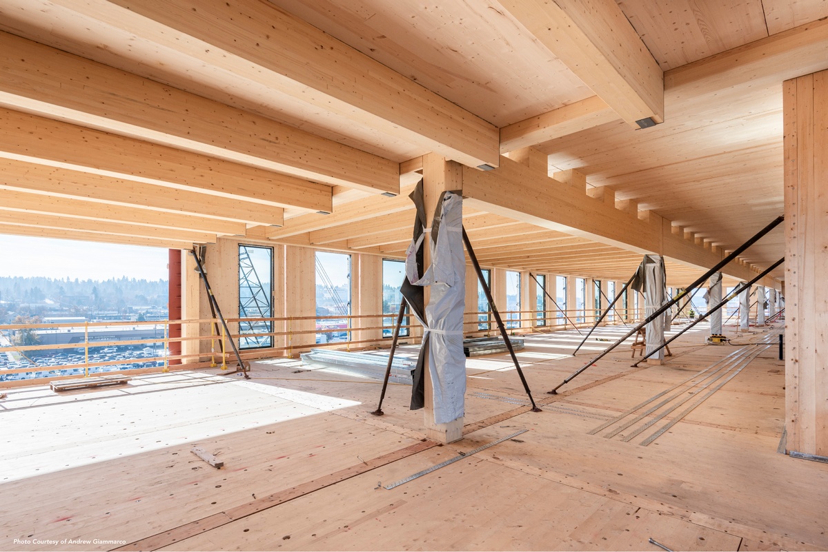 When fully adhered to a CLT substrate, WrapShield SA can improve continuity of the air barrier by resisting lateral air movement, contributing to the airtight envelope needed to meet the stringent energy goals set forth by the architect, Michael Green.