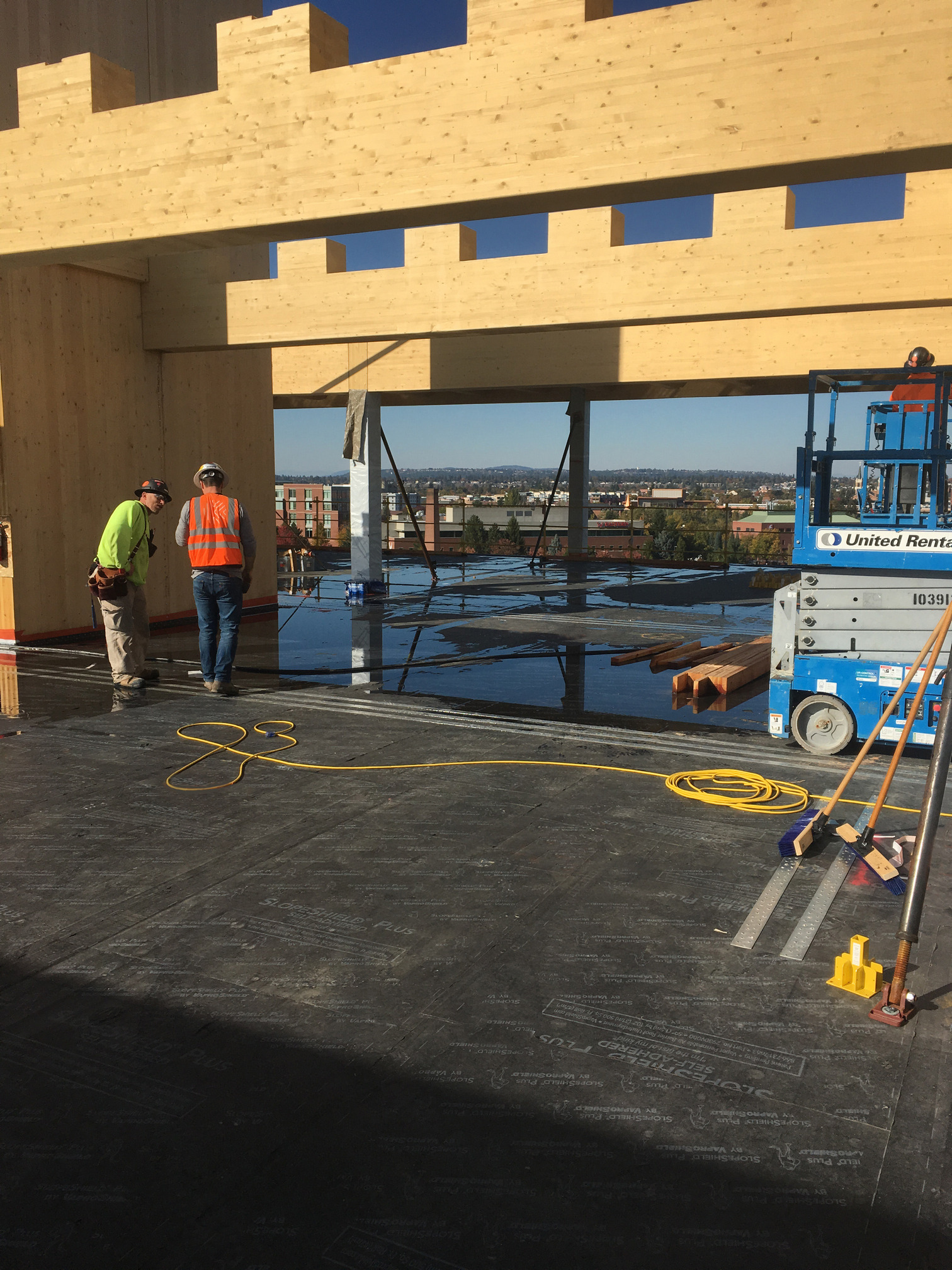 WrapShield SA Self-Adhered offers exceptionally high drying capacity, which will prove instrumental in drying out the moisture-laden CLT substrate over time.
