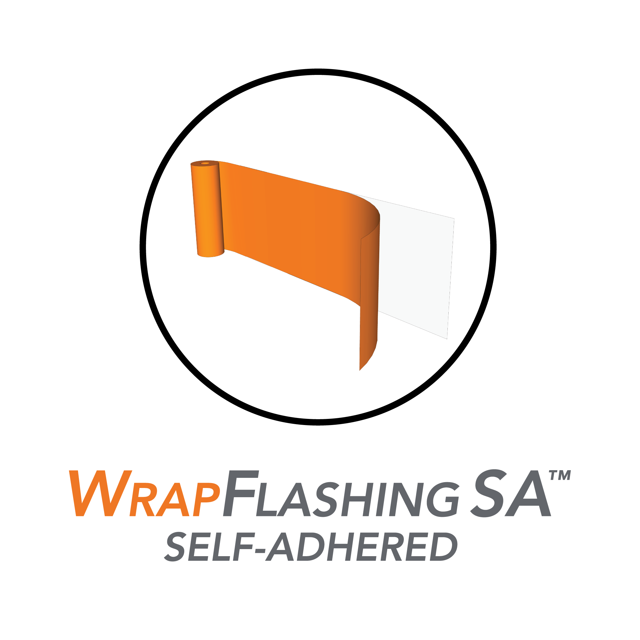 1. WrapFlashing SA Self-Adhered applied directly to sheathing + folded 2.75" inside of rough opening