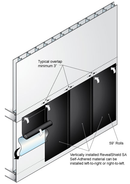 - Horizontal installation of the RevealShield SA Self-Adhered material is similar to the vertical installation method.